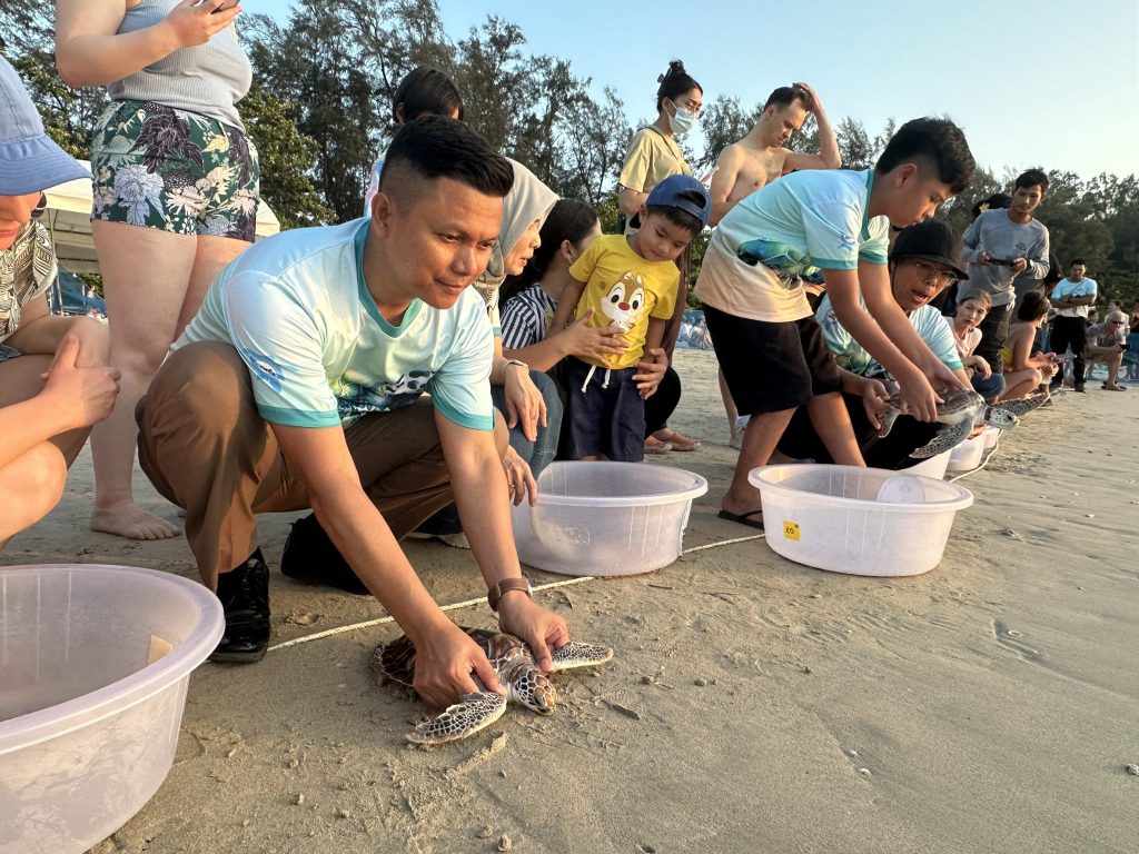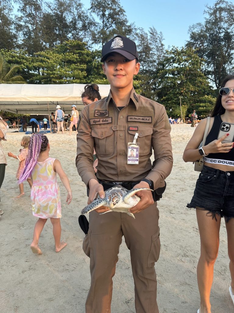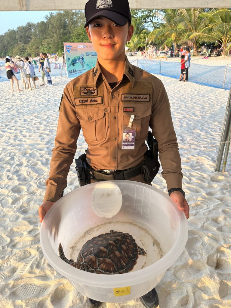 พ.ต.อ.สลาน สันติศาสนกุล ผกก.สาคู พร้อมด้วย ข้าราชการตำรวจสถานีตำรวจภูธรสาคู ร่วมกับกลุ่มอนุรักษ์ฟื้นฟูพันธุ์เต่าทะเลจังหวัดภูเก็ต
