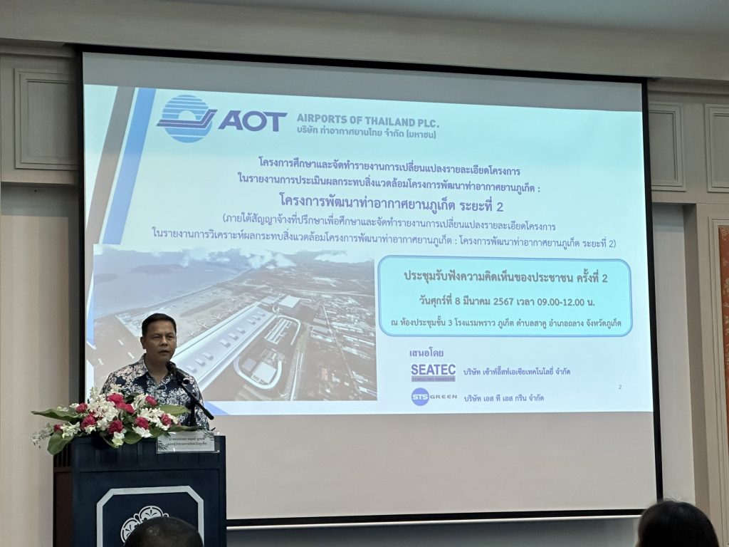 ได้เข้าร่วมประชุมรับฟังความคิดเห็นของประชาชน ครั้งที่ 2 โครงการพัฒนาท่าอากาศยานภูเก็ต ระยะที่ 2 ณ โรงแรมพราว ม.1 ต.สาคู อ.ถลาง จ.ภูเก็ต