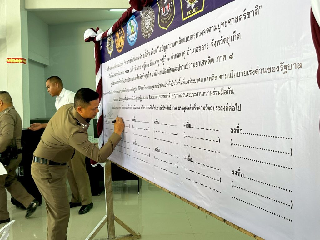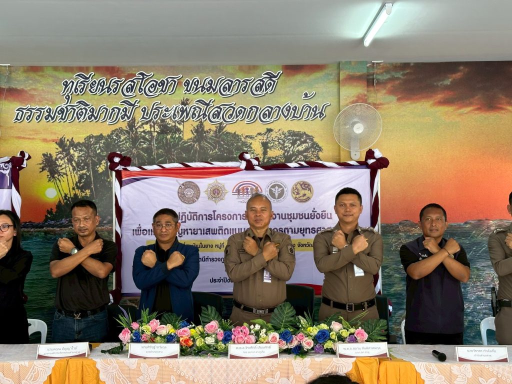 ร่วมลงนามบันทึกข้อตกลง (MOU) โครงการฯ , สร้างประชาคมหมู่บ้าน โดยหัวหน้าชุดปฏิบัติการ, กำนัน, ผู้ใหญ่บ้าน, สาธารณสุข และกระบวนการตรวจหาสารเสพติดในร่างกายผู้เข้าร่วมพิธีและผู้นำชุมชน เพื่อสร้างภาพลักษณ์เป็นแบบอย่างที่ดี แก่ชุมชน